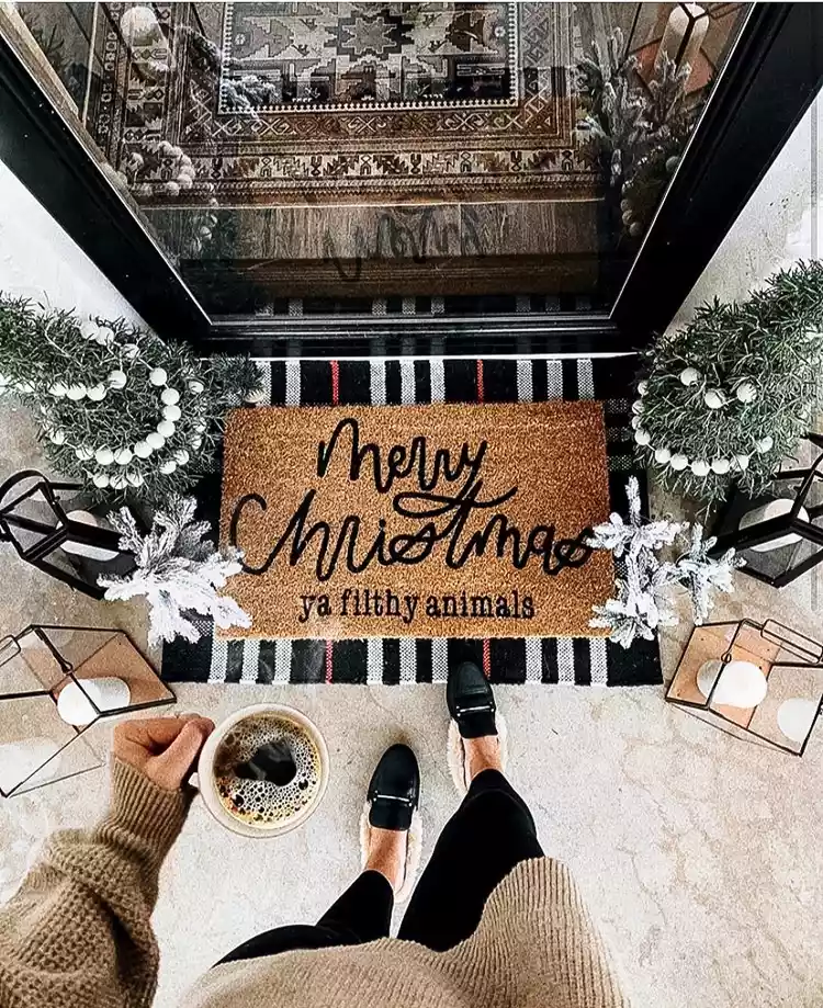 Un tapete de bienvenida con temática navideña es una manera fácil de decorar para la temporada este año. Considera ser un poco atrevido y optar por un mensaje que haga sonreír a tus invitados cuando entren para celebrar la temporada.