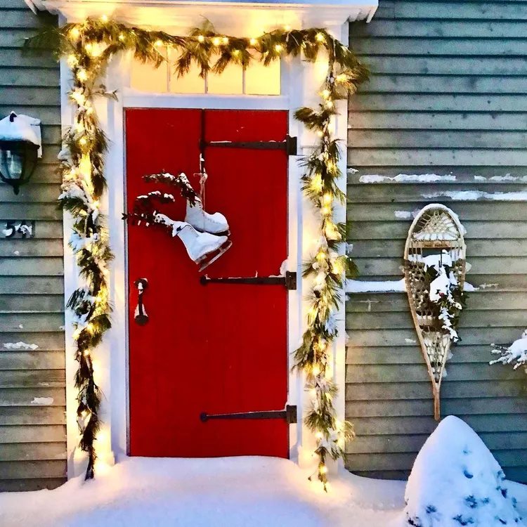 Si bien una corona es, por lejos, la forma más común y tradicional de decorar una puerta de entrada, considera pensar en algo más original este año. Nos encanta usar un par de patines antiguos colgados en el centro de la puerta como decoración. Una raqueta de nieve rústica y algunas tiras de guirnalda realmente completan el estilo.