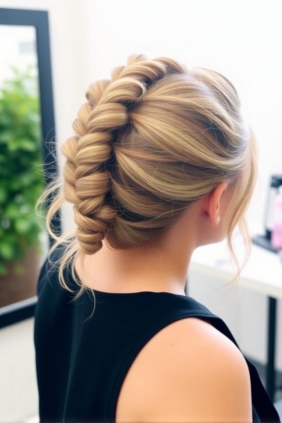 Este divertido peinado semirecogido combina una trenza holandesa con un bonito moño despeinado, perfecto para mantener el cabello divertido y con estilo. Trenza la sección superior y sujétala en un moño bajo y suelto mientras dejas que el resto fluya libremente. ¡Ideal para un look despreocupado pero ordenado!
