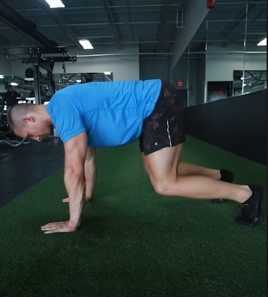 Desde aquí, tensa el torso, levanta las rodillas una o dos pulgadas del suelo y practica mantener la posición. Una vez que hayas pasado un tiempo desarrollando fuerza en esta posición, intenta empujar las caderas hacia arriba y hacia atrás y levantar las rodillas un poco más, luego bájalas nuevamente, como se muestra en el video. Mantén la columna neutra mientras te mueves. Con el tiempo, el ejercicio ayuda a desarrollar la estabilidad del tronco mientras trabajas el centro del cuerpo.