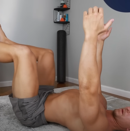 El dead bug es un ejercicio muy popular y conocido para el core, ya que la columna vertebral se apoya por completo en la posición supina. Para realizarlo, acuéstese boca arriba, extienda los brazos en el aire sobre el pecho y levante las piernas a 90 grados, con las rodillas dobladas.