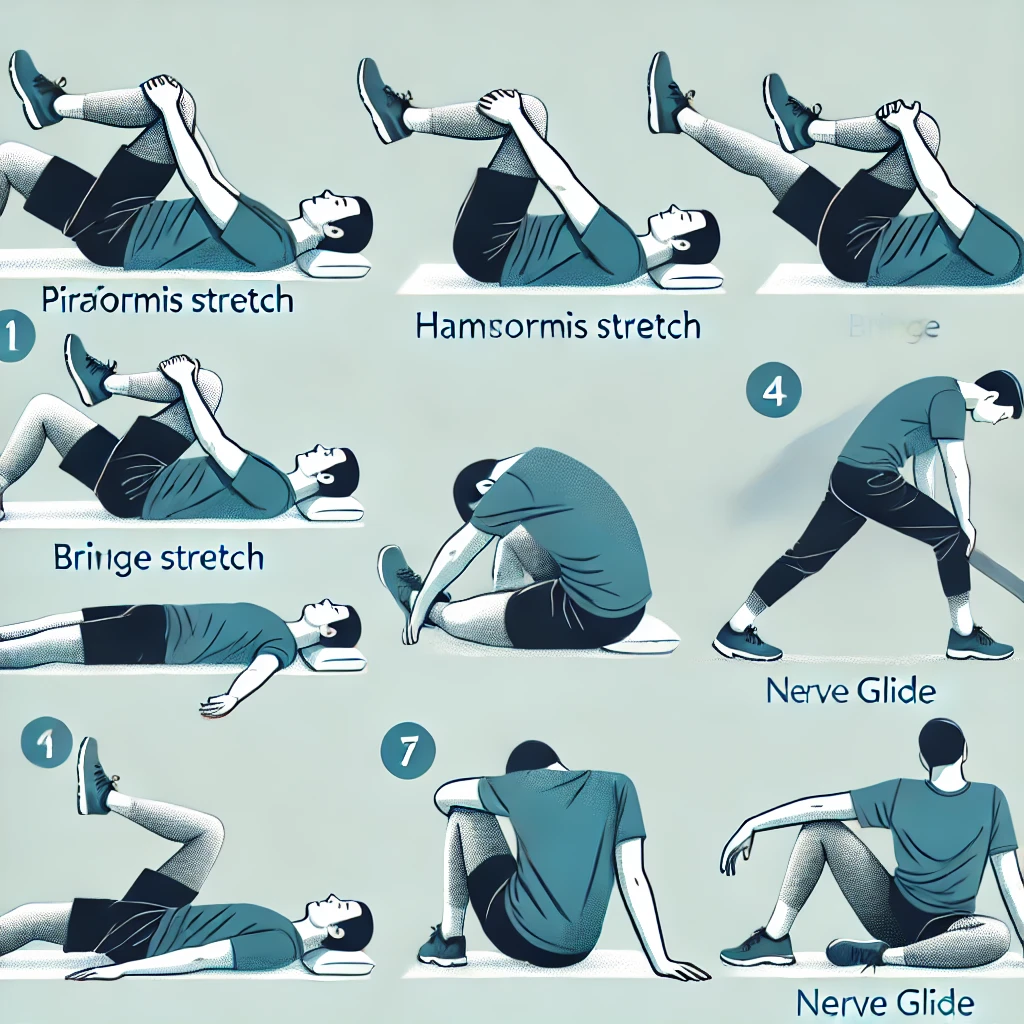 La ciática se refiere al dolor que irradia a lo largo del nervio ciático, que baja por la parte inferior de la espalda a través de las caderas y glúteos y por cada pierna. Aquí te presento algunos ejercicios que pueden ayudar a aliviar los síntomas de la ciática: