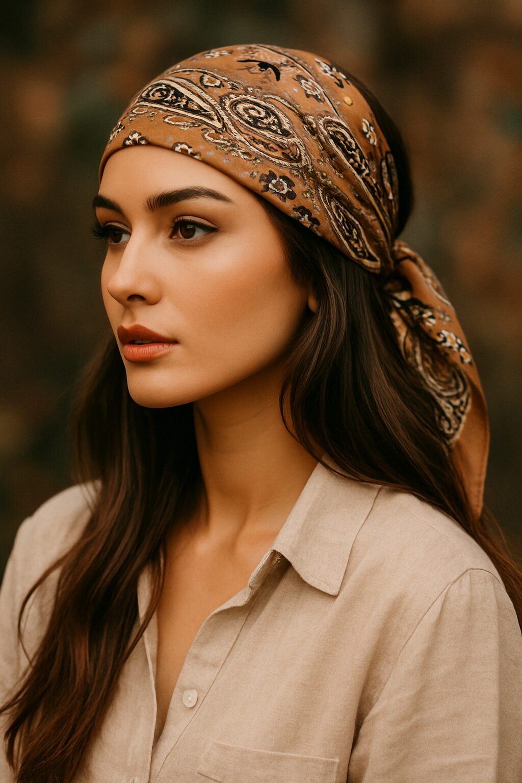 Segundo, porque responden a una tendencia de moda femenina más relajada, donde el estilo boho-chic, los looks naturales y la expresión individual toman protagonismo. La bandana permite jugar con el outfit, combinar colores y texturas, y aportar un aire desenfadado pero elegante.