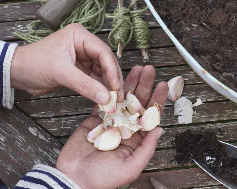 Busque variedades de bulbos de ajo en un vivero o en un proveedor de pedidos por correo y obtendrá una buena cosecha. Estos bulbos suelen llamarse «ajo semilla» y son los de mejor calidad.