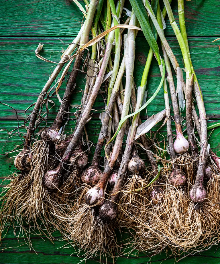 Si termina con una cosecha abundante, es importante almacenar los bulbos de ajo correctamente. «Después de cosechar el ajo, debe curarlo durante 2 a 3 semanas», dice el jardinero orgánico de Nueva Jersey Resh Gala, fundador de @hundredtomatoes y autor de Vegetable Gardening Made Easy.