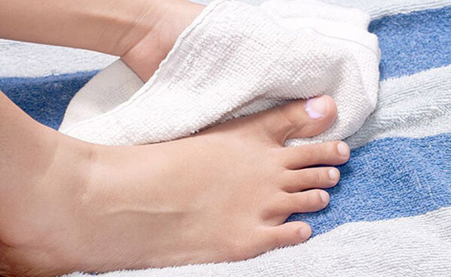 Después de lavar tus pies, sécalos bien con una toalla limpia, prestando atención a las zonas entre los dedos. Hazlo cada vez que salgas de la piscina o te mojes los pies.