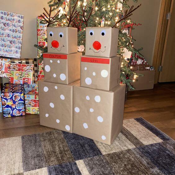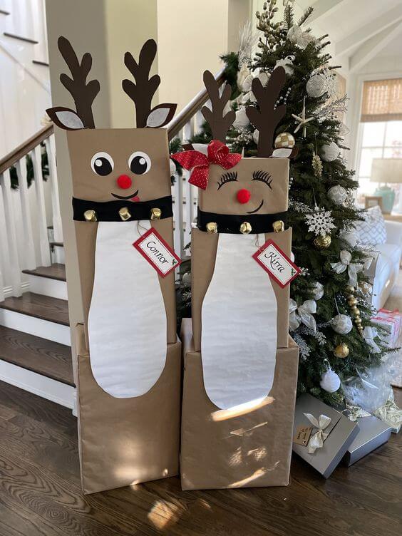 RENOS HECHOS CON CAJA DE CARTÓN: La creatividad navideña convierte materiales simples en piezas encantadoras. Estos renos, hechos a mano con cartón reciclado, no solo embellecen tu hogar, sino que también promueven la reutilización artística.