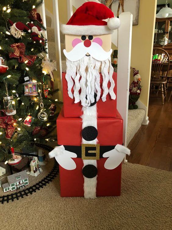 SANTA CLAUS DE CARTÓN: Captura la magia navideña con decoraciones hechas a mano. Sin duda, este Santa Claus, elaborado con cajas de cartón recicladas, es un adorno festivo encantador y muestra cómo reutilizar materiales simples para algo especial.