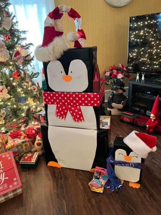 LINDO PINGÜINO DE CARTÓN: Este pingüino navideño, hecho a mano con cajas de cartón recicladas, demuestra cómo reutilizar materiales simples para crear adornos festivos encantadores y personalizados. Sin duda, añadirá un toque especial a tu decoración.