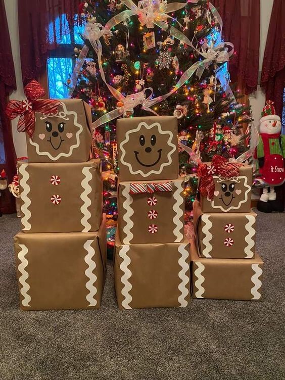 GALLETAS DE JENGIBRE: Este adorno hecho con cajas de cartón decoradas, no solo añade un toque festivo y divertido a la decoración, sino que también muestra cómo se pueden reutilizar materiales simples para crear algo especial y personalizado.