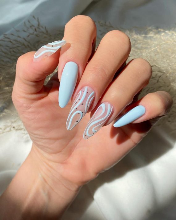 Los tonos pastel son otra opción popular para las uñas almendradas, ya que ofrecen un aspecto suave y femenino que es delicado y elegante a la vez. Desde el rosa bebé hasta el lavanda, estos tonos sutiles son perfectos para la primavera y el verano, y añaden un toque de fantasía a las yemas de los dedos.