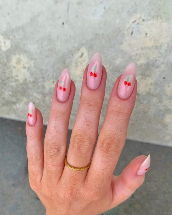 Las uñas sutiles con detalles en cereza ofrecen una manicura delicada y encantadora que captura la esencia de la belleza discreta. Con su diseño minimalista, estas uñas presentan una base suave y neutra que proporciona un fondo sofisticado para los dulces detalles en cereza. Cada uña está adornada con un solo motivo de cereza, lo que agrega un toque de fantasía y alegría al look general. Perfectas para quienes aprecian la simplicidad con un toque de estilo, las uñas sutiles con detalles en cereza ofrecen una manicura elegante y versátil que seguramente llamará la atención con su encanto discreto.