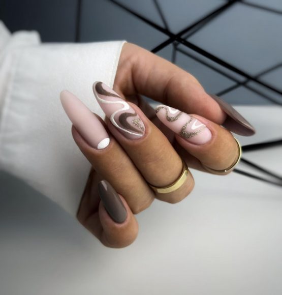 Para quienes buscan un toque más moderno, los patrones geométricos o en espiral y los diseños abstractos pueden agregar un toque contemporáneo a las uñas almendradas. Desde líneas minimalistas hasta formas geométricas intrincadas, estos diseños ofrecen una alternativa elegante y sofisticada al arte de uñas tradicional.