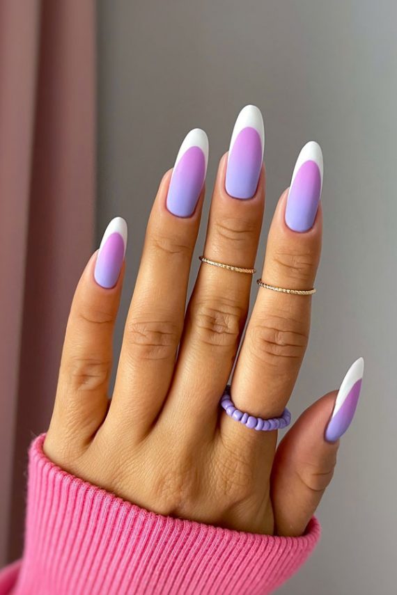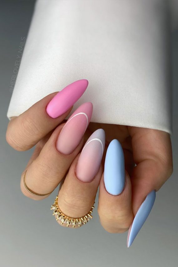 14. Diseños de uñas con degradados en azul y rosa con efecto almendra