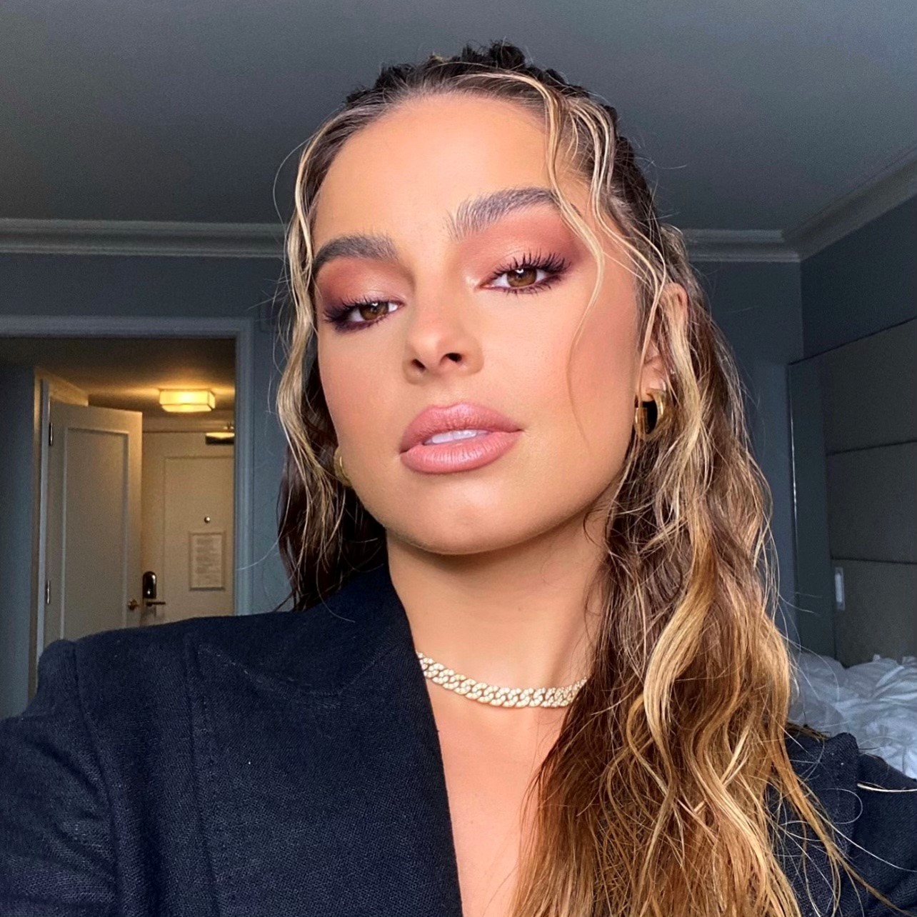 Rellena ligeramente sus cejas y aplica rímel para dar definición sin exagerar. Le gusta un acabado «fluffy» y natural. -