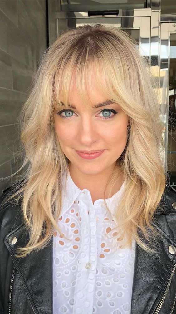 El estilo de flequillo Birkin sigue siendo popular. Para una versión fresca, prueba un flequillo a capas. Combina bien con el cabello largo y tiene un aspecto icónico.