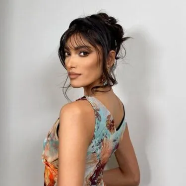 El flequillo es clave para los recogidos. Enmarca el rostro y define el tono para un look romántico. Este estilo combina un flequillo de pestañas con mechones largos y rizos sueltos. Juntos, crean un look suave y etéreo.