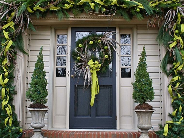 Si te atreves a ir más allá de los clásicos colores navideños, el uso de tonos vibrantes es una tendencia que viene pisando fuerte. Colores como el azul real, púrpura o incluso toques de rosa fucsia pueden hacer que tu puerta destaque de manera única. Combina estos colores con elementos dorados o plateados para mantener un equilibrio visual que sigue siendo festivo.