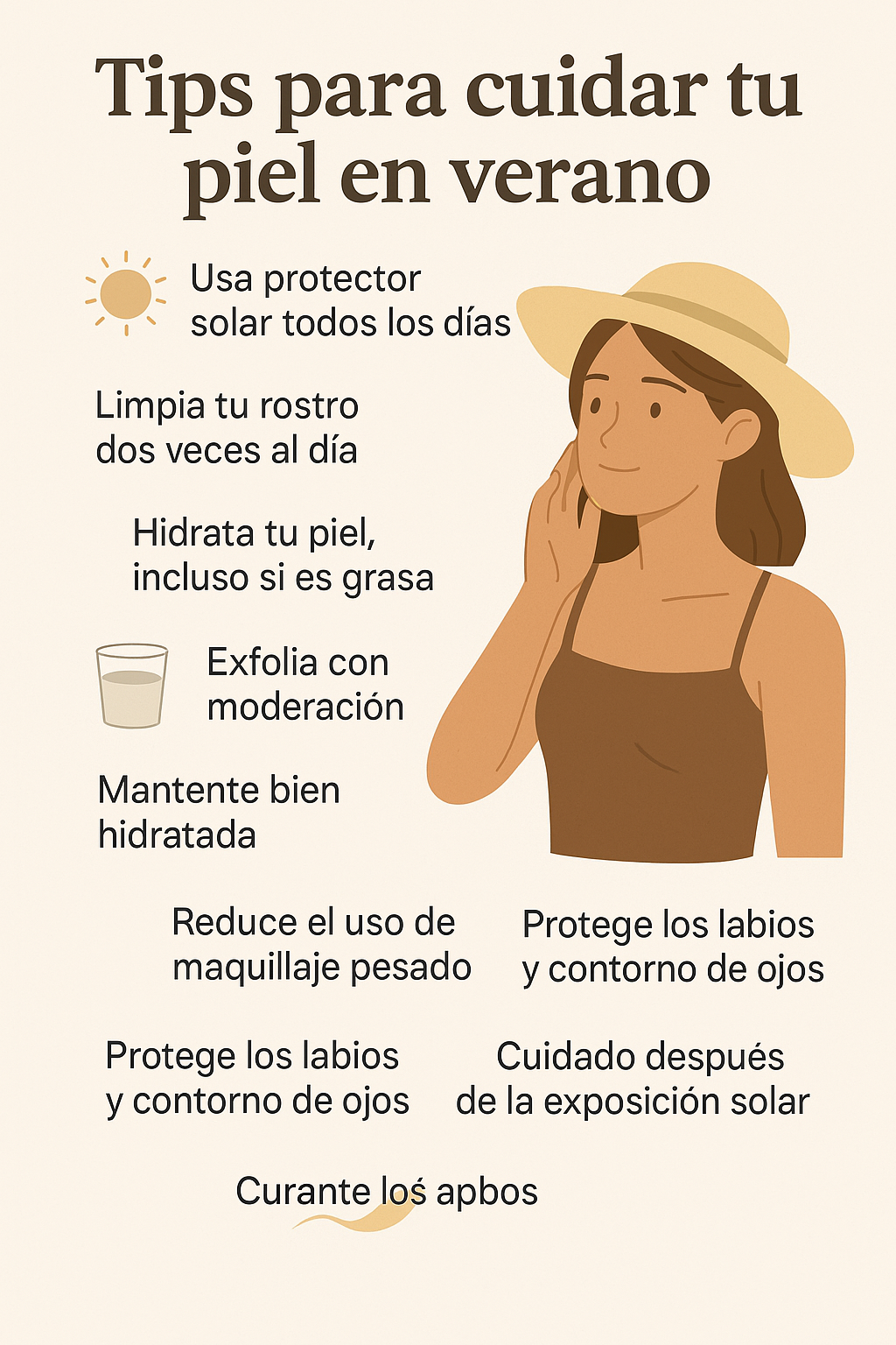 El verano es una de las estaciones más esperadas del año: días soleados, vacaciones, playa y mucha diversión al aire libre. Sin embargo, también es una época en la que la piel se ve más expuesta a factores que pueden dañarla, como los rayos solares, el sudor, el cloro de las piscinas y la sal del mar. Por eso, es fundamental ajustar tu rutina de cuidado facial y corporal a las necesidades de esta temporada.